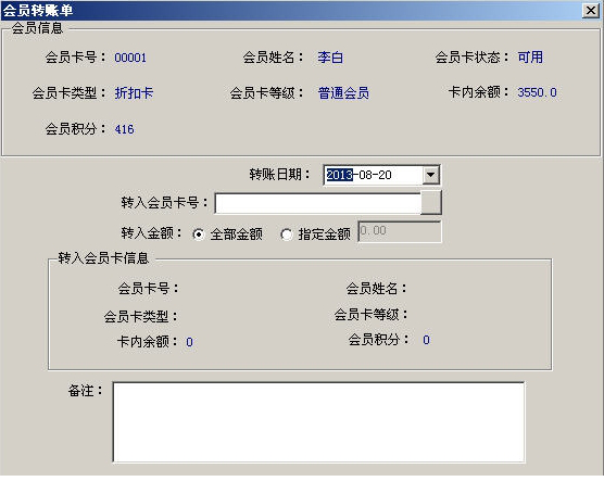 会员转账:支持不同会员间的余额转账功能,须密码;安全、快速、方便。