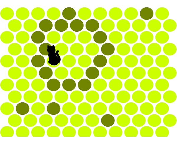 猫不能走到深色的点上,并且按照当前最短距离走到屏幕边缘;