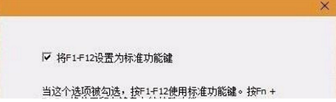 将F1-F12设置为标准功能键:勾选将F1-F12设置为标准功能键选项,当这个选项被勾选,按F1-F12应用于标准功能键,按FN+F1-F12将应用于印在键盘上的特殊功能