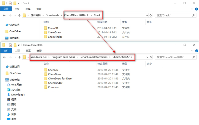 11、将Crack文件夹内的所有文件复制到经常用的软件安装位置ChemOffice2018目录下替换