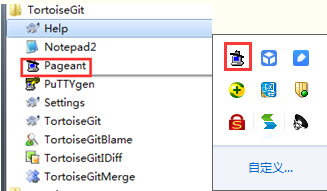 打开:开始-->TortoiseGit-->Pageant,打开以后右下角会有图标,双击点开蓝屏幕电脑那个图标