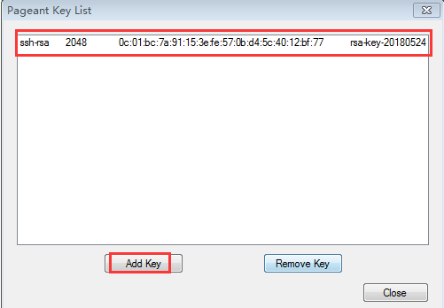 添加前面生成的private key.ppk,也就是私钥。然后关闭
