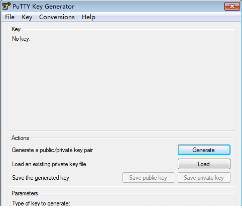 开始-->TortoiseGit-->puttygen,进入PuTTY Key Generator