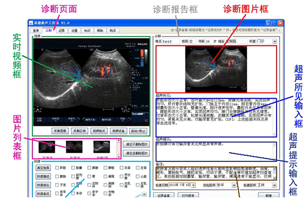 2、集病人登记、图像采集、诊断编辑、报告打印、查询、学习等功能于一体;