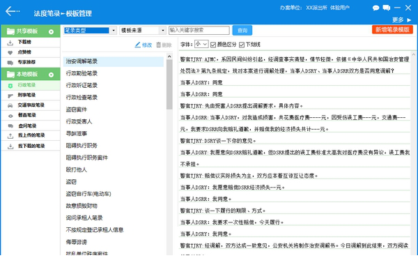 提供满足各类案件的几百种专业问答模板,问答模板持续完善更新并支持上传共享功能;提供多语言的文书模板,包括部标准版本,蒙文、藏文的笔录文书模板。
