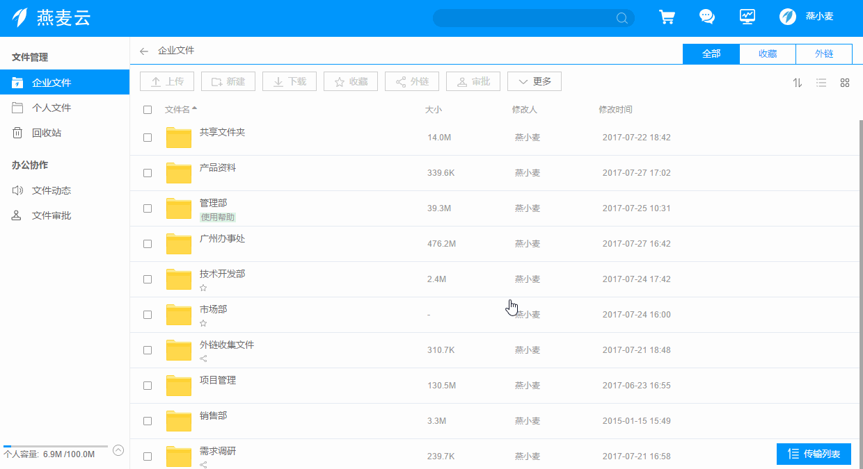 燕麦云在线企业云盘服务,零成本启用,安全存取与分发文件,随时随地高效轻量的协同工作。