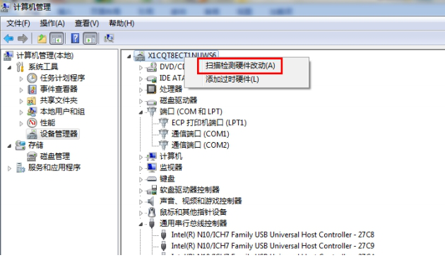 扫描后电脑会发现新硬件并安装,安装好叹号问号就变正常了,再试下连接设备