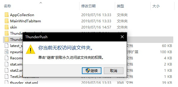 3、然后双击打开【ThunderPush】文件夹,如果提示需要访问权限,那就代表成功了。