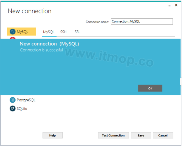 单击 “测试连接”按钮。应用程序尝试连接到具有指定参数的服务器。连接成功后,会出现确认信息:
