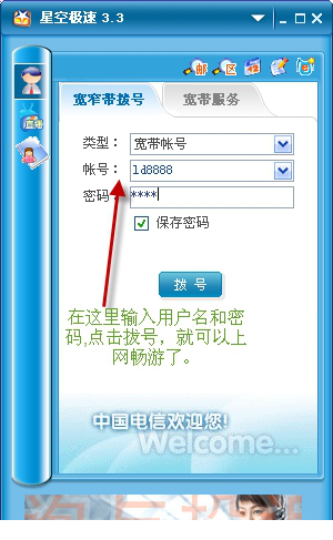 3.3在已有的2.X版本的基础上增加了更多吸引用户的功能,主要表现在通过和各类SP的积极合作,将内容丰富,趣味多样的应用程序以插件的形式集成到客户端中,并且将上网用户常用的浏览器以定制的形式无缝整合到“星空极速”客户端上,同时为了宽带用户帐户安全,3.3版提供了宽带帐户和密码修改功能。