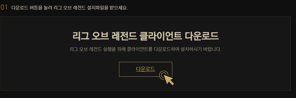 第一步,打开网站:https://download.kr.riotgames.com/league,然后按照下图操作步骤,下载lol韩服安装包。