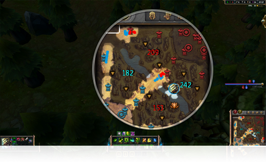 大脚独有的补兵提示功能自动帮助您清晰标记线上可击杀残血小兵,自信心将伴随资源优势从此一点点建立,妈妈再也不用担心我的补兵了!应用于快捷键“】”右中括号键可在游戏内进行开关