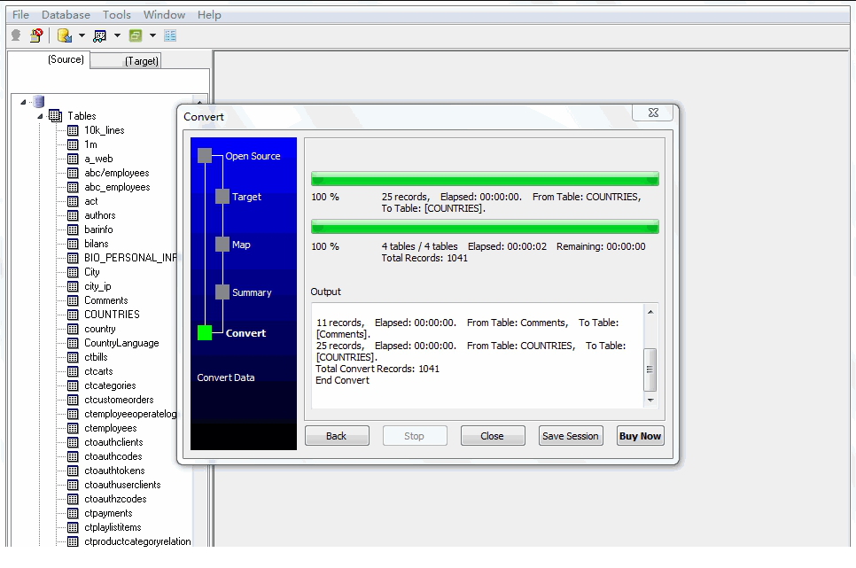 3、支持批量转换表:一次批量转换表数据