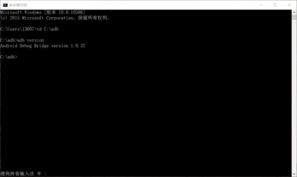 进入到adb目录,此时可通过输入adb version 根据提示信息确定是否可正常应用于,如图即为正常的情况。