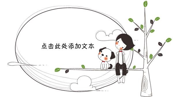PPT封面使用了黑色绘制的树木、房子、和一个在吹泡泡的小女孩背景图片。中间填写PPT标题文字。界面卡通有趣。