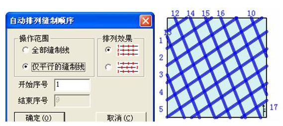 4.自动排列缝制顺序,对纸样中的若干缝制线自动排序。