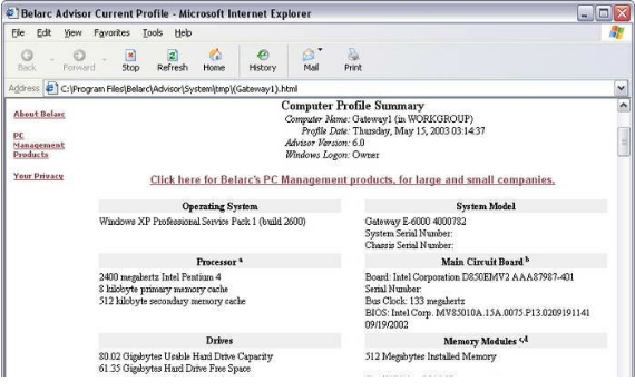 Belarc Advisor应用于说明