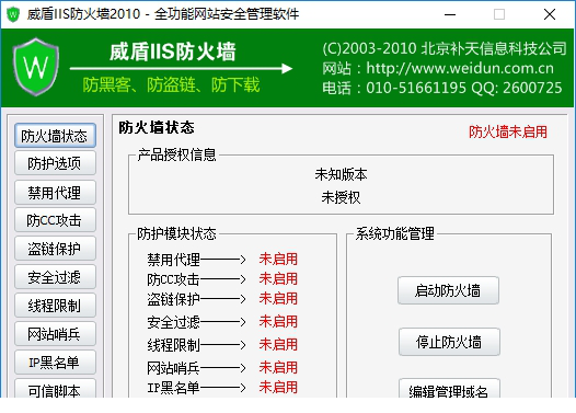 威盾iis防火墙是一款功能全方位保护你的电脑系统的安全经常用的软件,防黑客、防恶意攻击、防盗链等等,功能强悍,防护数据透明,随时可查看,经常用的软件本身小巧,运行速度快!有需要的朋友快来万能驱动网下载吧!