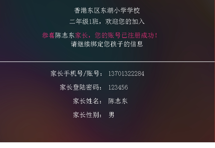 孩子帐号即注册成功,孩子帐号一般是s+家长的手机号。