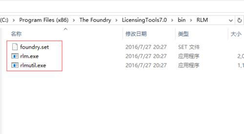 复制“rlmutil.exe, rlm.exe 和foundry.set”到“C:\Program Files (x86)\The Foundry\LicensingTools7.0\bin\RLM”;