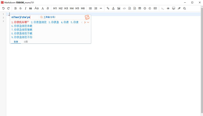 在编辑模式下输入一个汉字,或者几个英文字母,输入提示窗口会自动列出文章中出现过的包含此汉字或者英文字母的词语,并可选择词语快速输入。