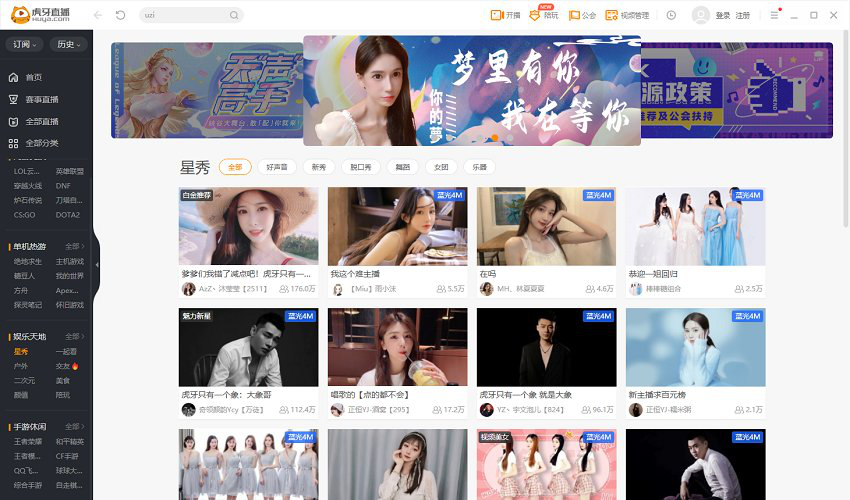 全部游戏:LOL、DNF、CF......上百款正在直播的游戏任你观看,搜索游戏名称即可观看;
