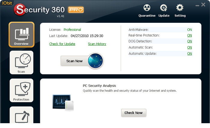 IObit Security 360提供了自动的频繁的更新服务,让你的反恶意程序库随时保持在最新状态,有效抵御恶意程序威胁。