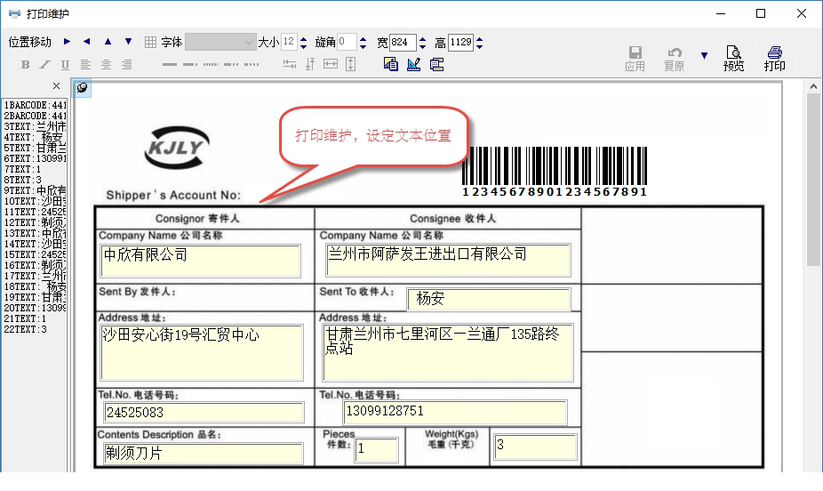 在前面介绍了,我在框架里面的网购运单处理里面,继续应用于了这个控件进行套打的处理,例如我们需要套打类似这样的界面内容。