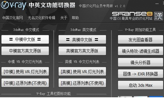 -vray3.2的这个版本是英文和中文双语版本,用户可以自由切换。