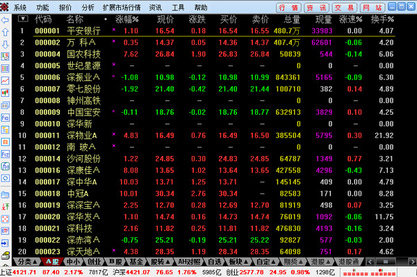 2、完善的报价分析功能:股票分类细致,行情栏目众多,灵活的排序,随时增删自选股与板块股。