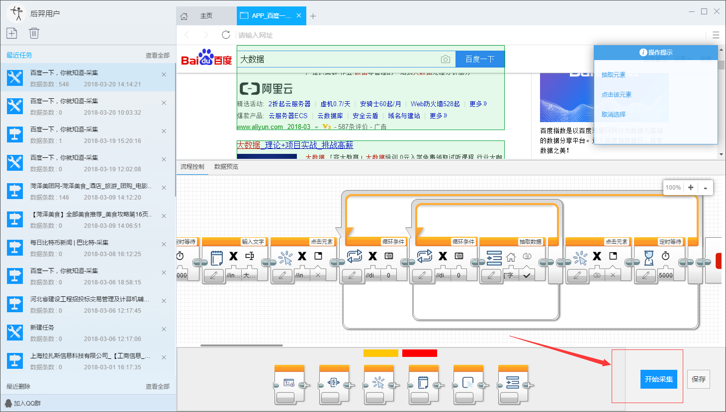 全程拖拽和点击操作,不需要开发更不需要懂技术任何人都能用的网页数据采集器