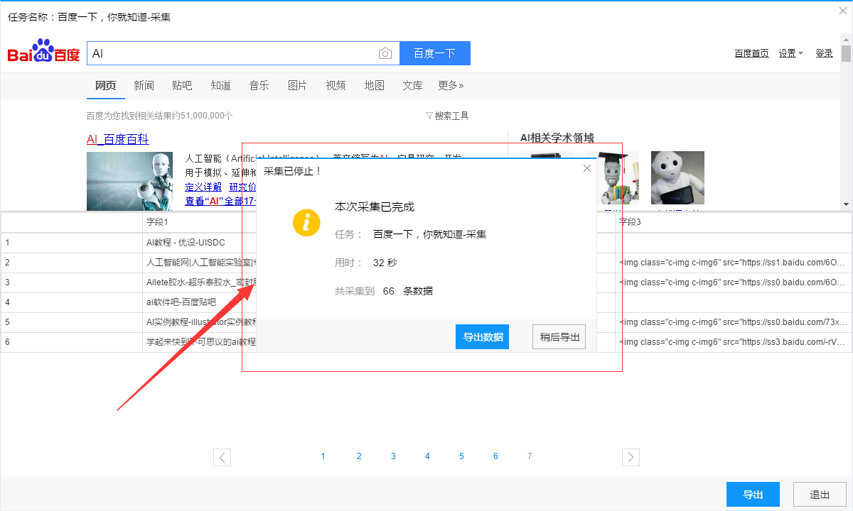 2)采集完成后,选择“导出数据”可以把数据都导出到本地文件