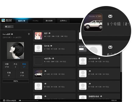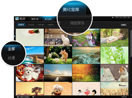 系统主题,样式太少了!第三方主题使用,破解太麻烦?酷屏提供一键应用,只需选好主题,鼠标轻点“应用”,主题发烧友们,最新最热最酷最炫的海量主题等你挑选。还可以自由混搭主题,机密功能等你来发现。
