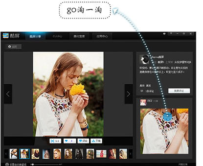 独乐乐不如众乐乐,精美图片要和小伙伴一起分享。酷屏为你提供了所有资源的分享功能,你可以分享给你的好友,也可以通过新浪微薄,腾讯微薄分享你喜欢的资源。语音图片功能等你来开启,让小伙伴更能感受到你拍照时的心情。