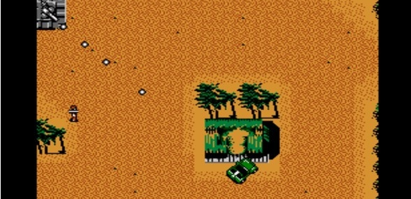 关口,我方用CH47重型直升机放下两辆吉普车(双人游戏模式),第一关的重点在于帮助玩家学习操作和各种武器使用!敌方在本关出现的武器有:炮台、坦克、战斗兵、内河炮艇。战斗兵可以用手榴弹、火箭、机枪消灭,也可以用碾压。其他都需要用手榴弹、火箭或者机枪。在加入武器射手后,吉普车的武器可以升级为火箭(单炸,还可以升级到双炸、四开花)。本关共有3个俘虏营房,4个武器射手营房。