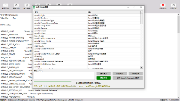 Replace C4DSTR 是一个 CINEMA 4D 插件语言汉化工具,前身版本为 C4D Code Convert 4.0 版,由C4D中文站前身(C4D联盟汉化团队)于2018年7月开发制作,历时2年更新,本次更新将软件名称 C4D Code Convert 更新为Replace C4DSTR,现已包含各类C4D主流插件字典数据13000多行,软件字典编辑器集成谷歌在线翻译,软件更新提示,C4DtoA节点翻译扩展功能等,主要模块分为,语言文件编辑模块,自动翻译模块,字典添加模块以及C4DtoA节点列表翻译模块,可以帮你快速翻译各类C4D本地语言文件。在 Replace C4DSTR 新版本中,新增正则表达式功能,可以帮助翻译用户针对不同的文件设置正则表达式进行翻译工作。
