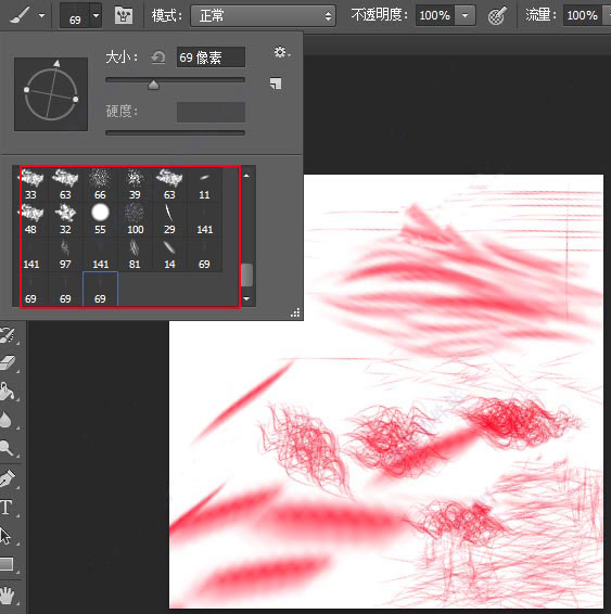 4、找到最后的画笔就是ps动物毛发笔刷,有多种类别,用户可以调整大小直接放在图片上使用。