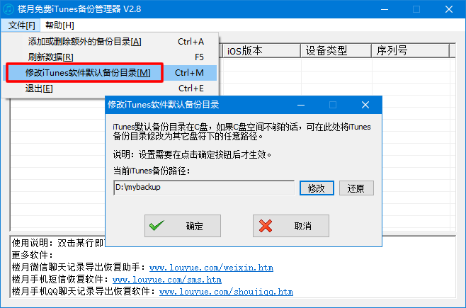 修改:可修改iTunes备份路径到任意我们想要设置的新路径。