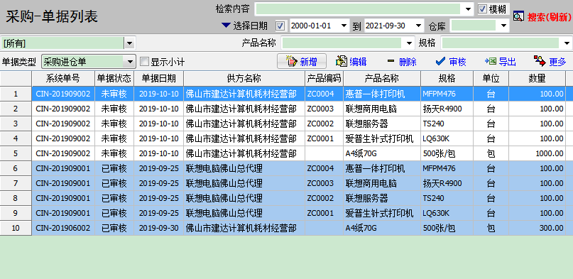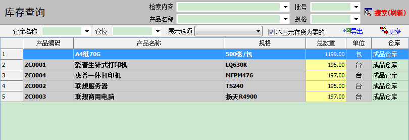 2、采购进货单开单后:库存自动增加,实时可查询存货。
