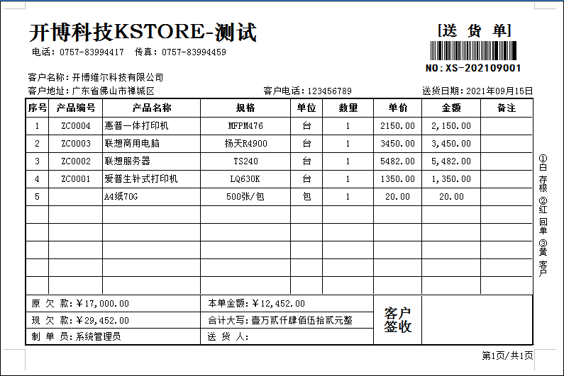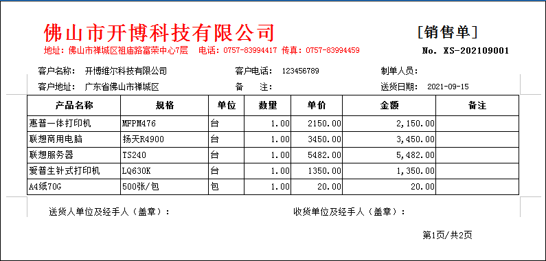 (1) 销售管理:销售订单、销售送货单、销售退货单、销售单据查找、客户对账单、批量打印送货单;