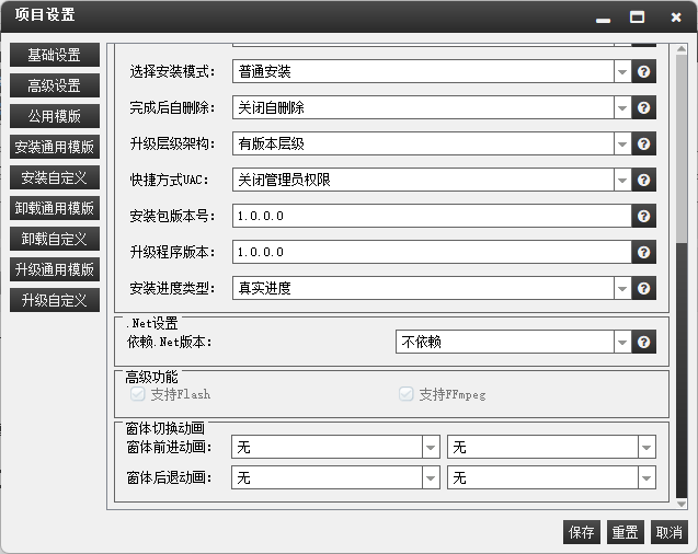 复杂设置界化,对于一些常规需求,可以通过NSetup项目设置进项修改,无需了解技术细节