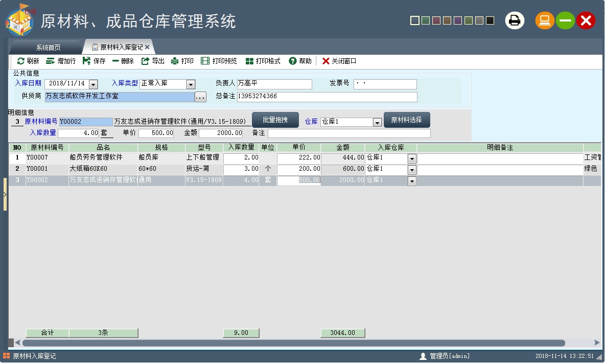 原材料入库管理