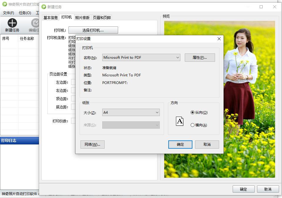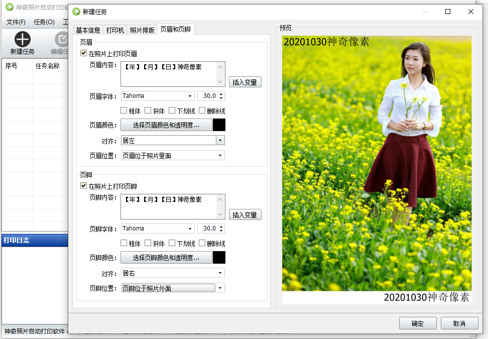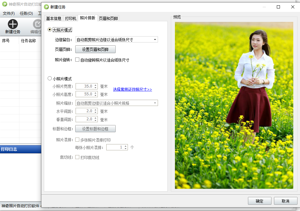 大照片模式可以设置页眉页脚,自动旋转以适应纸张尺寸