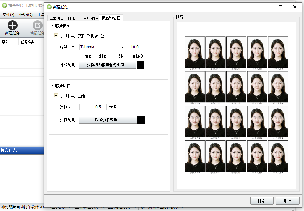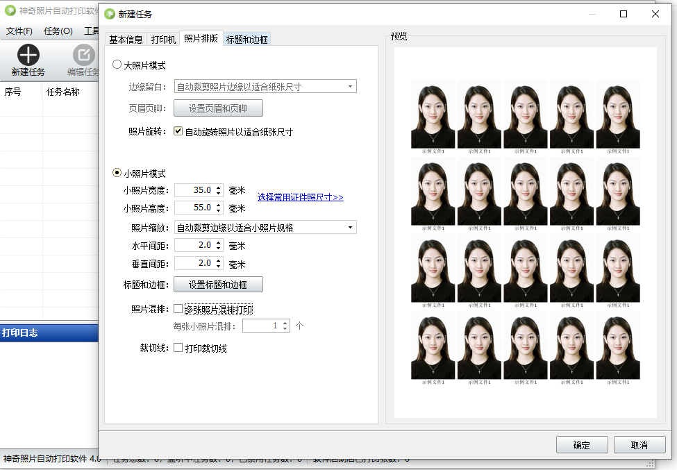 小照片模式可以自由设置照片的宽和高,实现自动裁剪,水平、垂直间距以及标题边框的自由设置等等