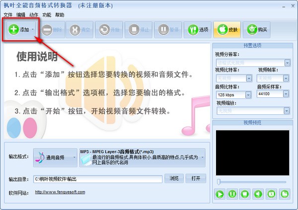 1、点击“添加”按钮选择您要转换的视频和音频文件