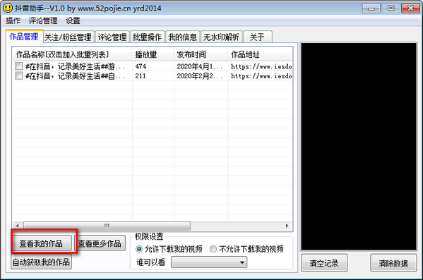 1.本程序是用于管理自己抖音账号内的作品,关注/粉丝,评论等,支持批量操作,非常方便非常实用!