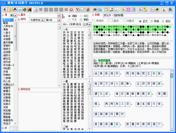 鹰蛇诗词助手是非常多的人都在使用人用的一款古诗词写作辅助软件,拥有诗词格律检测功能,包括标记平仄、押韵、是否失黏等,并且提供了丰富的古诗词资料,支持关键词快速查询功能,是您创作古诗词的好帮手。