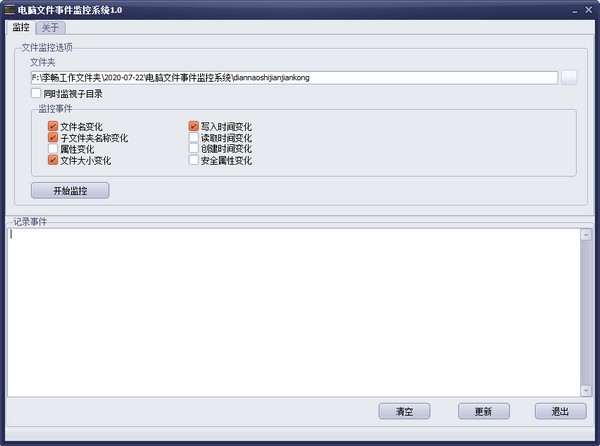 3、点击开始监控即可,一旦有文件发生变化,就会在记录事件中显示更改情况,你可以将这些事件文本复制导出。