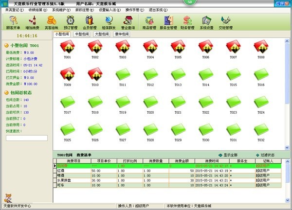 天意娱乐行业管理系统是非常多的人都在使用人用的一款针对娱乐场制作的管理软件,简洁非常实用,为用户提供了丰富多样的服务,还支持预定管理、会员管理、短信群发、营业管理、服务生管理、财务管理等。接下来万能驱动网小编就给大家带来这款软件的具体介绍,感兴趣的小伙伴们速来看看吧~~