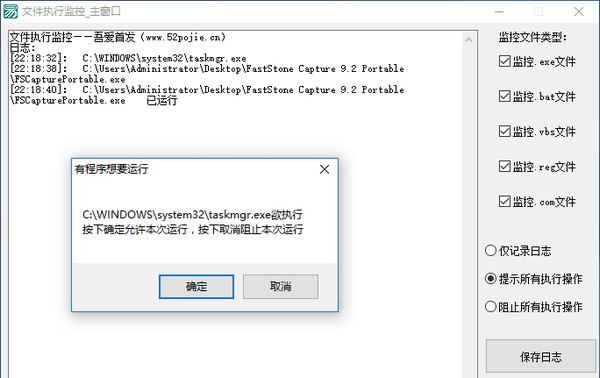 文件执行监控原理是修改注册表让特定后缀文件用本程序打开,并获取文件路径和启动参数来实现特定后缀文件执行的监控,支持监控exe、bat、vbs、reg、com文件,接下来小编就给大家带来这款软件的具体介绍,感兴趣的小伙伴们速来看看吧~~